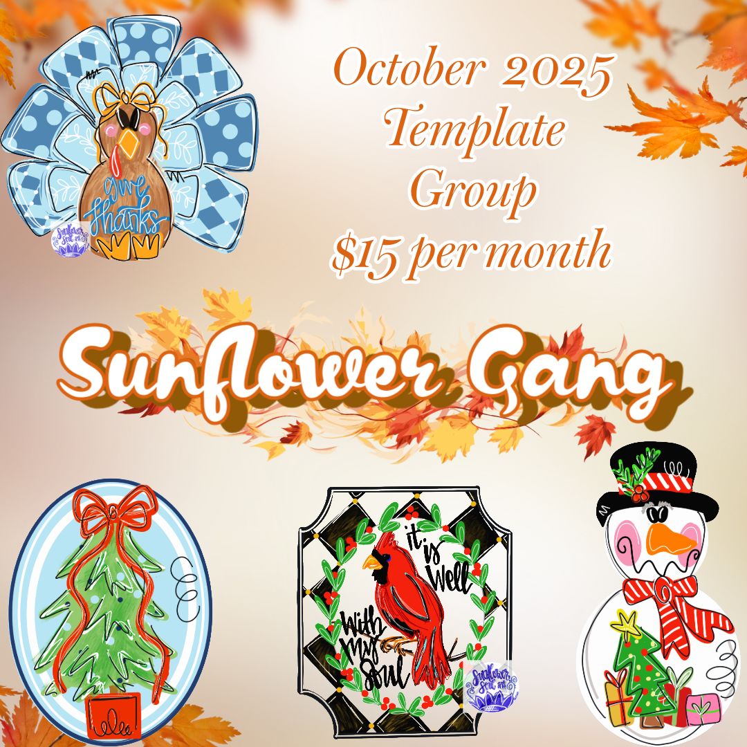 Sunflower Gang is a group for makers! You will receive door hanger templates as well as some instruction or techniques along the way! Just click on the button below to join! Don't forget to join the Sunflower Gang Template Club on Facebook as well!