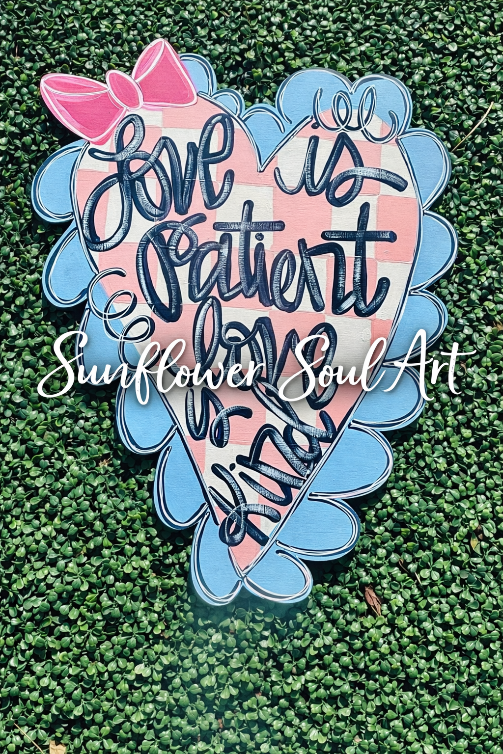 Each of my signs and door hangers are hand painted and may vary slightly. Bows may also vary but will be complimentary to the design. Each sign is laser cut 1/4” plywood and painted with acrylic paint and sealed to protect the paint (not the wood) and is not recommended to be directly in the elements. Only the front of the signs are painted. Items can be personalized and needs to be added to the notes at checkout.