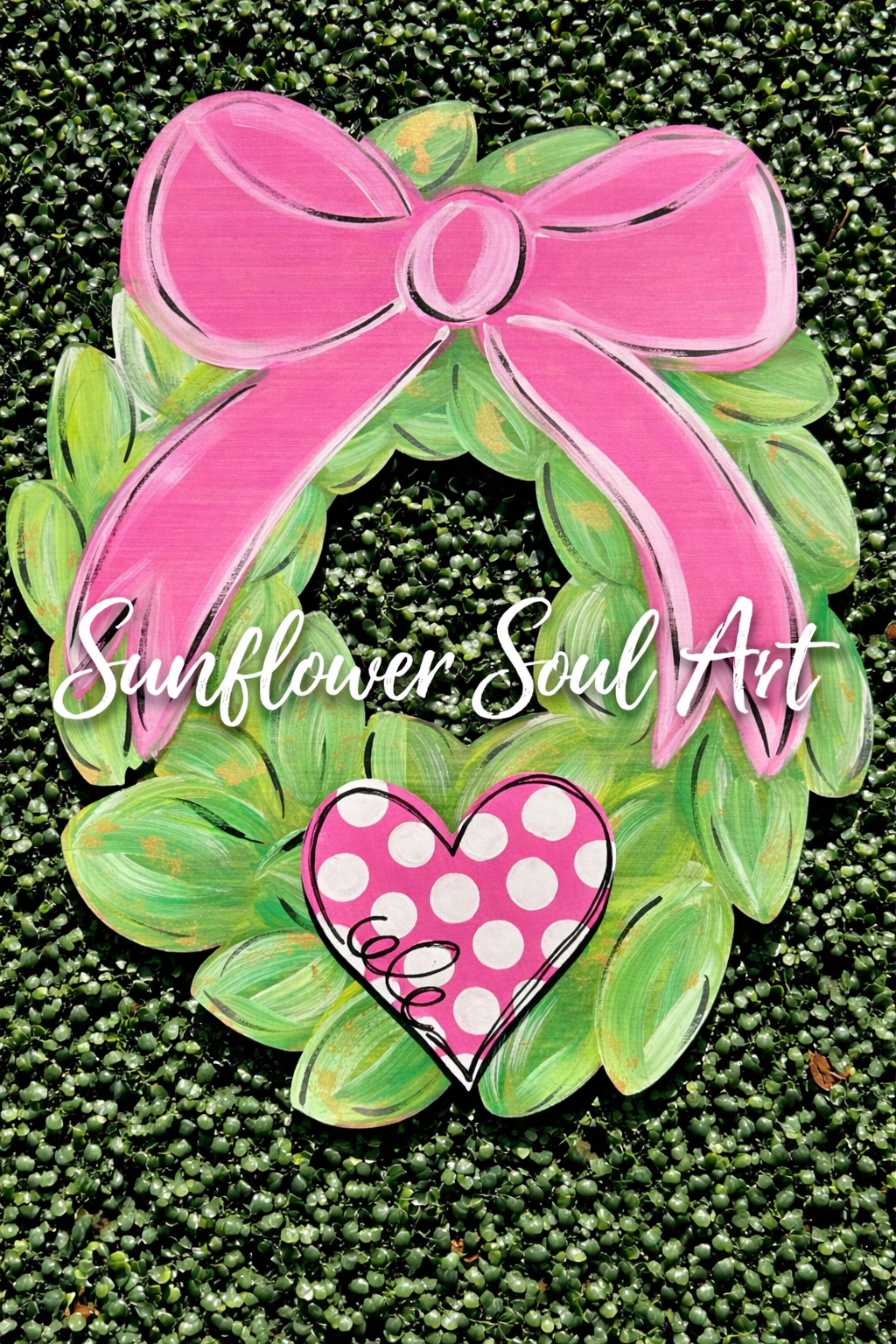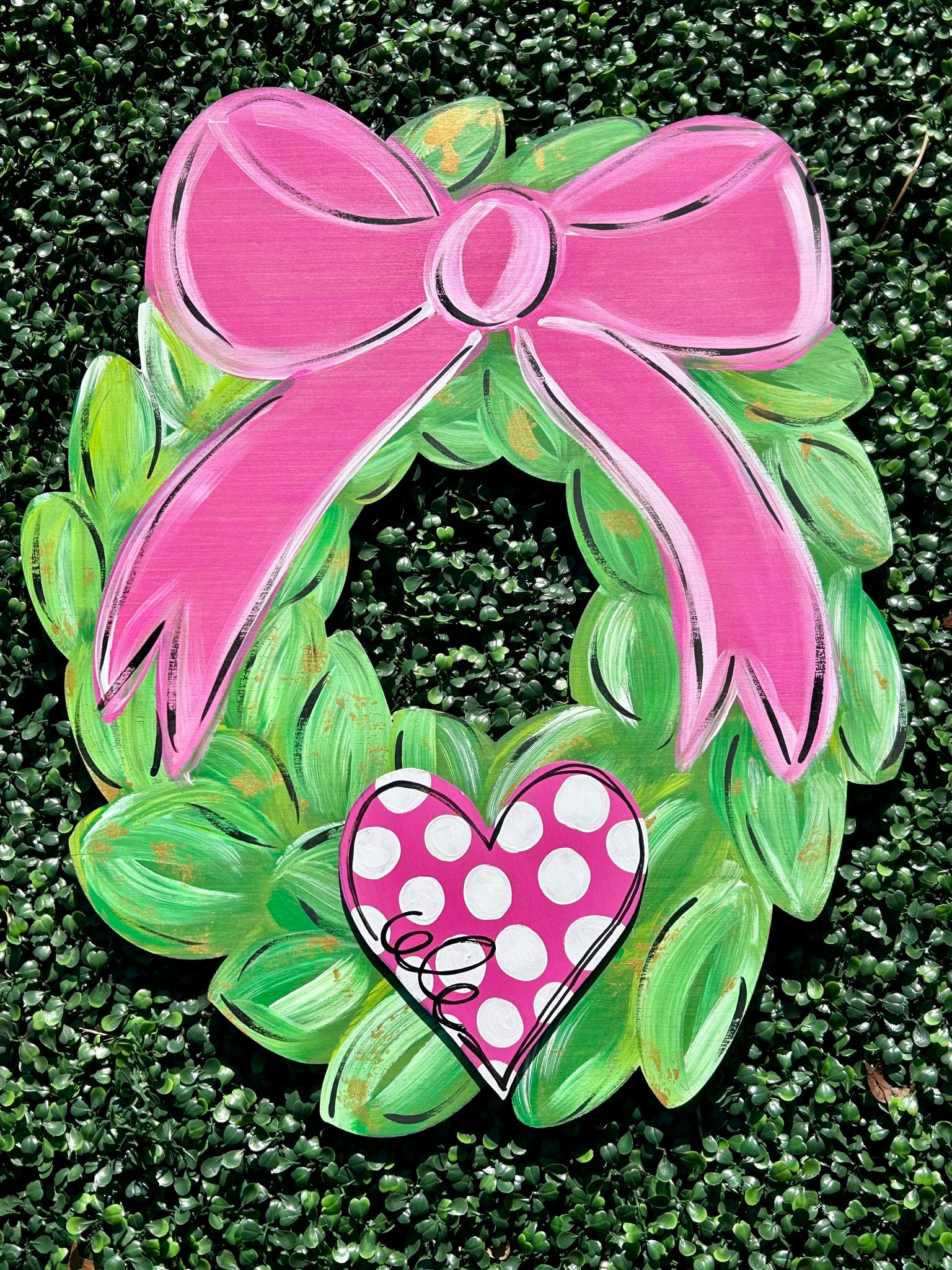 Wreath door hanger, with color bow of your choice. Comes with Velcro and 1 attachment, specify at checkout or I will add one that coincides with the coming holiday or season. 22”